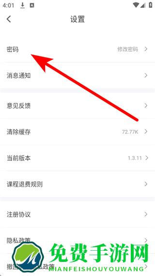 3、在设置界面里,点击密码选项,进入修改密码页面。