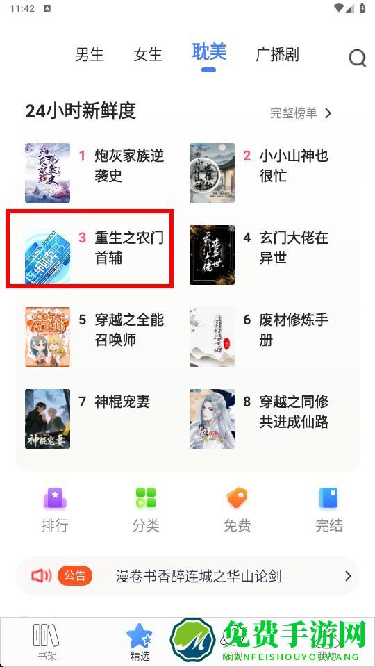 1、打开连城读书进入精选页面,切换到想看的分类,找到感兴趣小说重生之农门首辅并点击进入阅读。