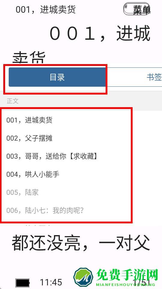 3、页面弹出后,点击目录选项,即可查看该小说包含的章节列表,快速跳转阅读不同章节。
