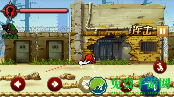 2、点击右侧的剑形或枪形按钮,让火柴人使用武器攻击红色火柴人等敌人,可触发连击,造成大量伤害。