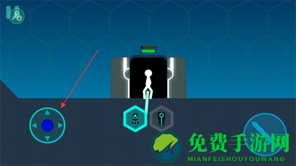 1、使用左侧虚拟摇杆操控火柴人移动,从初始区域出发,探索关卡。