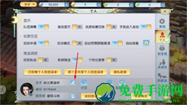 2、在设置页面的个人板块中,点击名字旁边的编辑图标,进入改名界面。