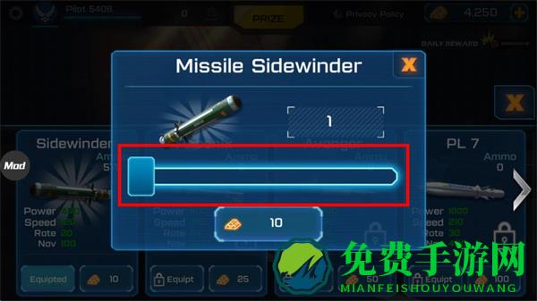 3、在导弹购买详情界面,通过滑动进度条选择购买数量,确认后消耗相应的货币。