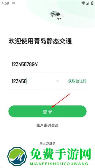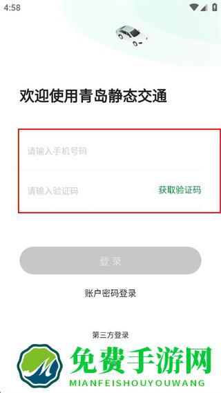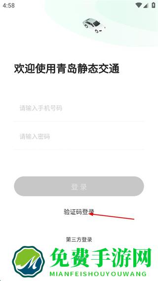 1、打开青岛静态交通软件,点击验证码登录。
