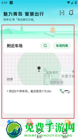 4、在主界面查看附近车场区域,查看附近停车场信息。
