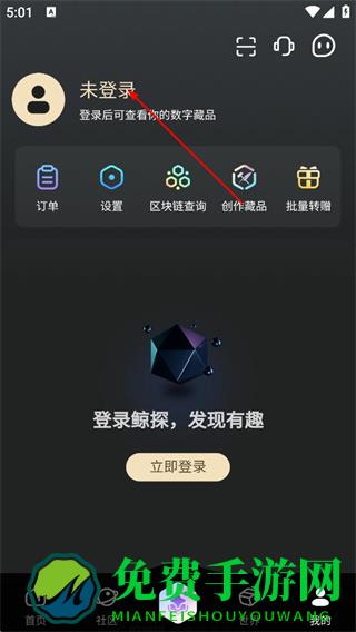 1、在鲸探APP首页,点击底部我的,进入个人中心页面。