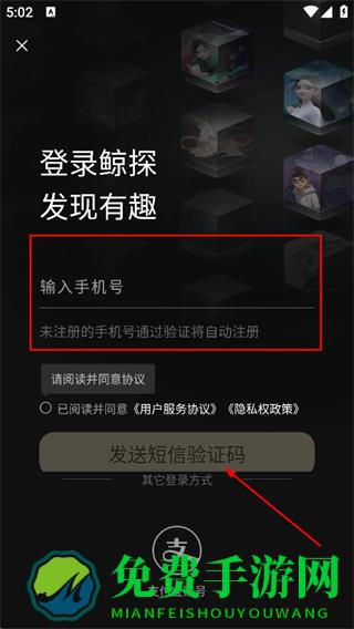 4、在手机号登录界面,输入手机号,点击发送短信验证码。