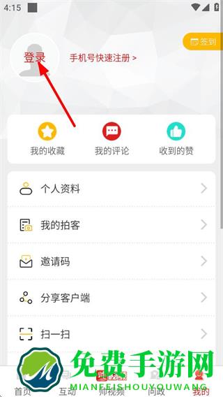 2、进入我的页面后,点击页面上方的登录,可进入登录界面。