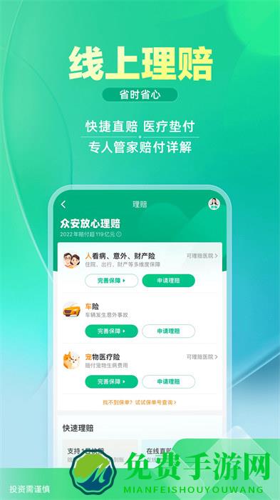 众安保险app官方版是一款专业的保险服务手机移动平台, 为用户提供全面专业、安全省心的货运保险、责任保险、信用保证保险、短期健康、意外伤害保险等保险服务,为用户提供一站式保险服务平台,更有一键管理保单的功能,非常方便,你值得拥有!喜欢的用户快来下载安装吧!