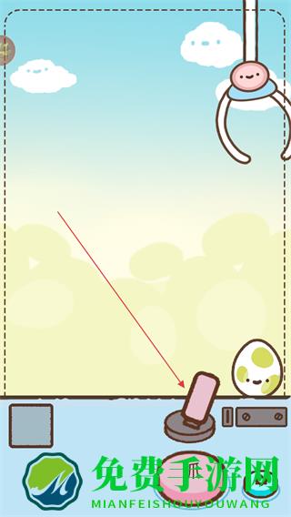 1、进入萌宠娃娃机游戏界面,通过左右摇动操纵杆来控制钩爪下落的位置。