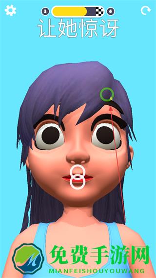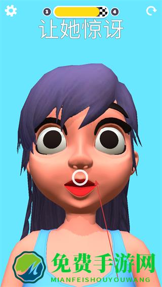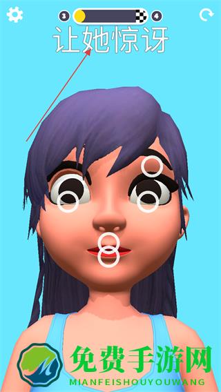 1、根据关卡要求让她惊讶,依次调整人物的眼部、眉部、唇部等部位,使其呈现惊讶的表情。