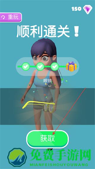 4、完成表情调整后,顺利通关,可点击获取按钮领取奖励,如服饰道具等。