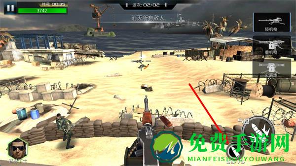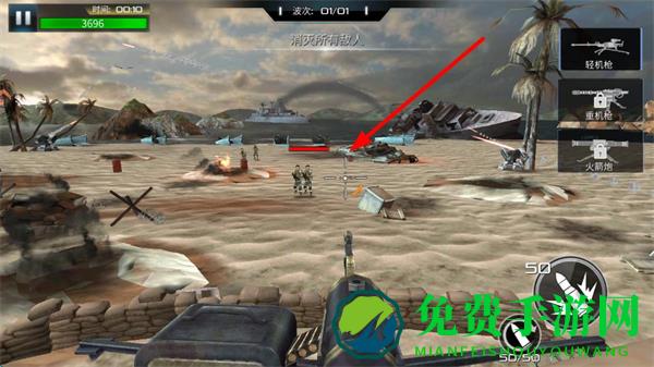 1、游戏战斗中通过滑动屏幕瞄准敌人,点击右下角射击按钮进行攻击,面对不同敌人需及时调整瞄准方向。