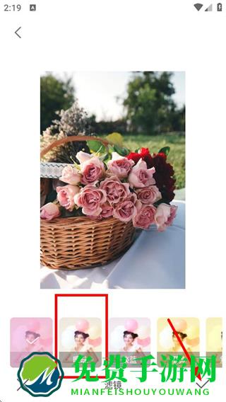 4、在滤镜选择页面,选择滤镜后,点击下方箭头即可应用该滤镜。