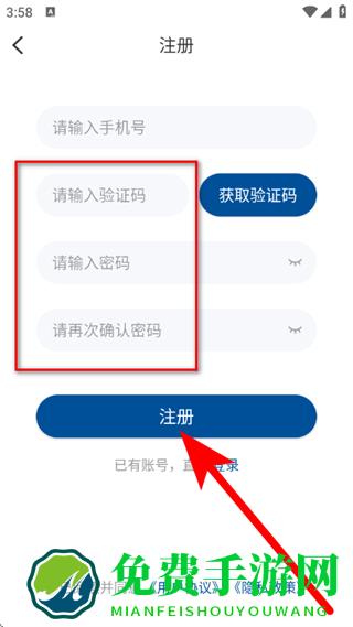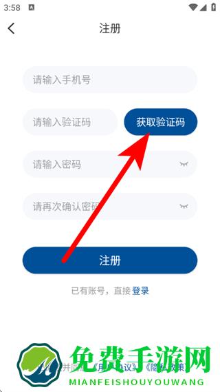 5、输入验证码、密码及确认密码,勾选后,点击注册,完成注册。