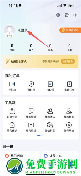 1、在APP首页,点击底部我的,进入个人中心页面。