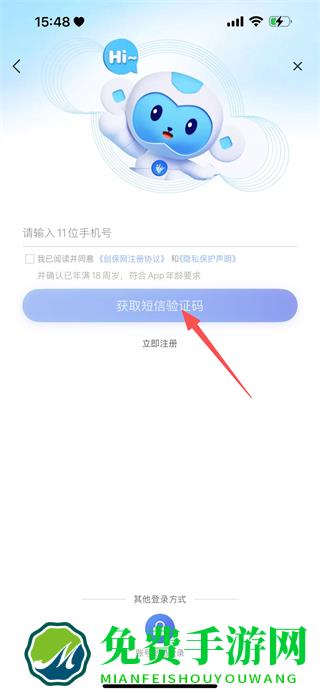 3、在登录界面,输入11位手机号,点击获取短信验证码。