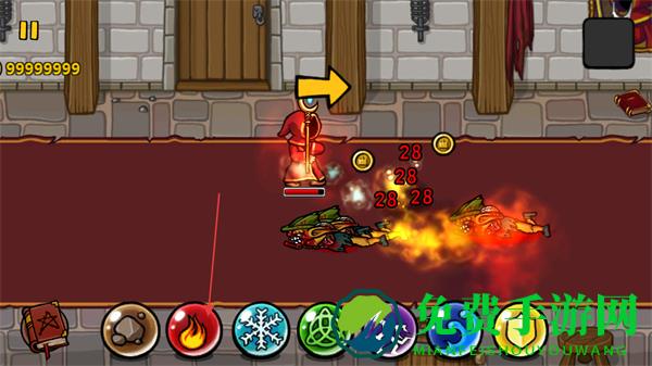 2、消灭敌人后收集金币,积累资源,提升魔法能力。