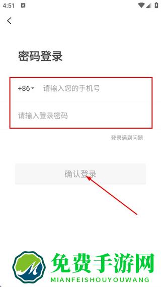 4、在密码登录界面,输入手机号和登录密码后点击确认登录,完成登录操作。