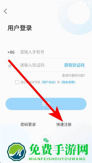 3、在用户登录页面,点击快速注册,进入注册页面。