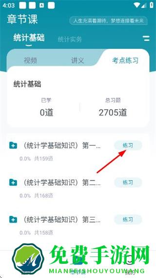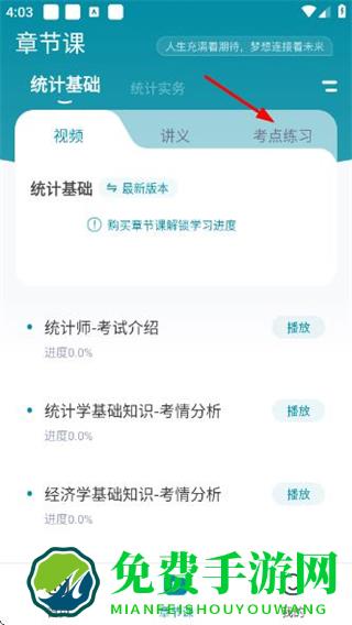 2、在章节课页面点击考点练习,切换到考点练习板块。