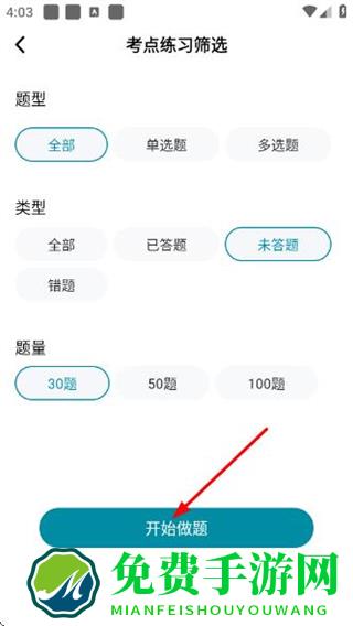 4、在考点练习筛选页面选好条件后,点击开始做题,进入考点练习做题页面。