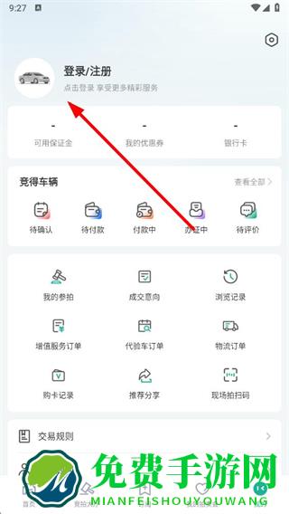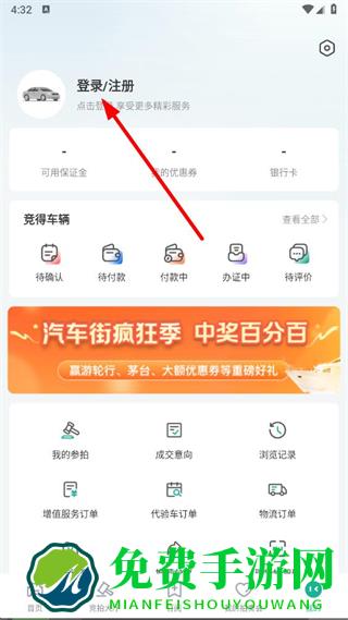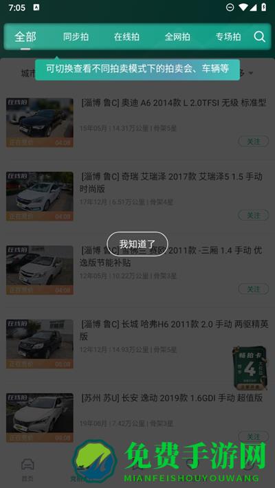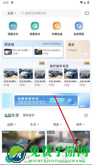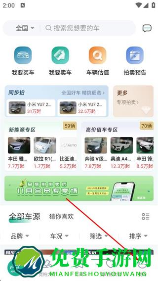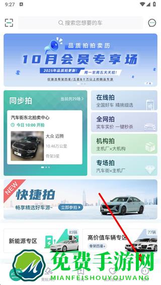 2、进入后可以看到最上方一栏,适用于切换查看不同拍卖模式下的拍卖会、车辆等;