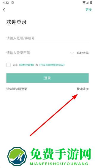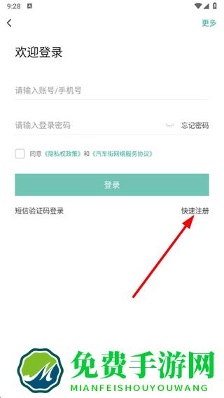 3、在欢迎登录页面中,选择快速注册选项,进入账号注册的信息填写界面。