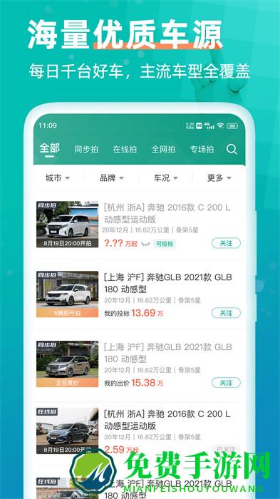 3、在下方条件筛选栏目中,可以在图片中看到现在拍卖模式,并查看拍卖状态和竞拍城市和车牌;