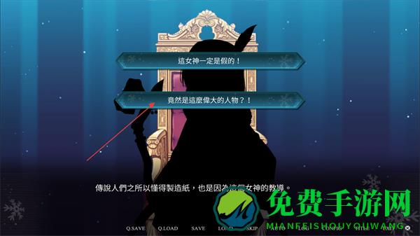 4、在剧情选项界面,选择对应对话选项竟然是这么伟大的人物,推进关于女神教导的相关剧情内容。