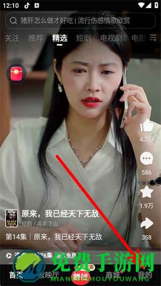 1、进入到软件的首页之后可以看到精心挑选出来的短视频内容;