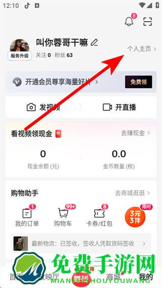 2、在个人页面中,点击个人主页选项,进入主页界面。