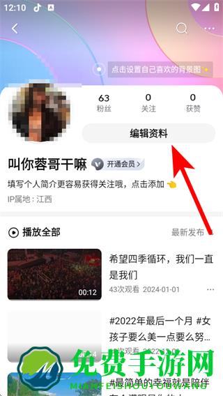 3、在主页界面中,点击编辑资料按钮,进入资料编辑页面。