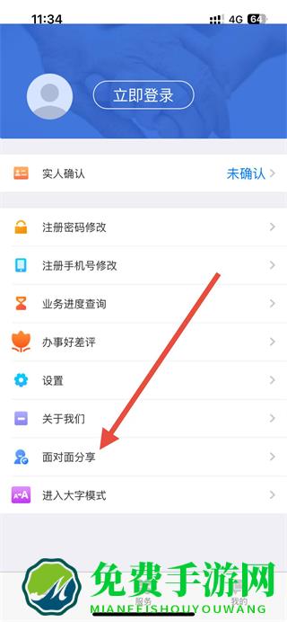 2、在页面中,找到面对面分享选项并点击,进入对应的分享功能界面。