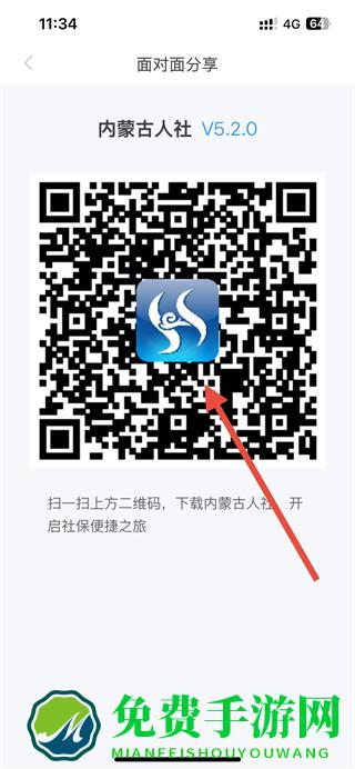 3、在面对面分享界面,可看到生成的二维码,他人扫码即可完成内蒙古人社的分享操作。