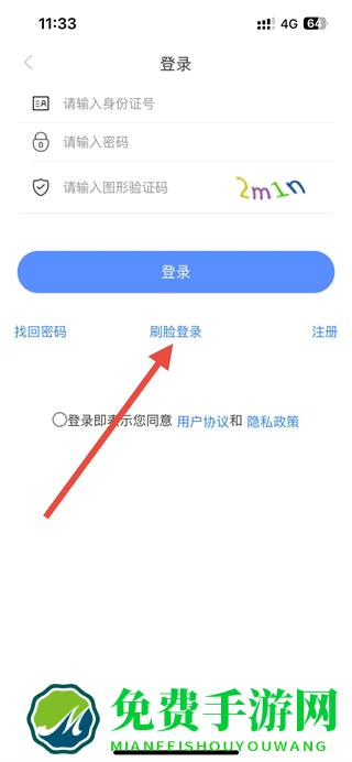 3、在登录界面,找到并点击刷脸登录选项,切换至刷脸登录的信息填写界面。