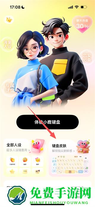 1、在小鹿键盘首页,点击键盘皮肤选项,进入键盘皮肤选择页面。