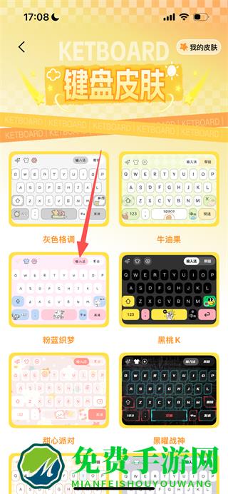 2、在键盘皮肤页面,点击目标皮肤,进入该皮肤详情页。