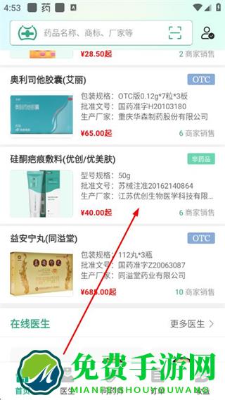 1、在兔灵医药app的首页,点击目标药品,进入该药品的供货报价页面。