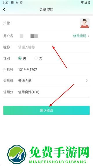 3、在会员资料页面,输入新的昵称,点击确认修改,完成用户名更改。