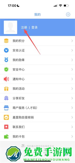 1、在我的嘉兴首页,点击底部的我的选项,进入个人中心页面。