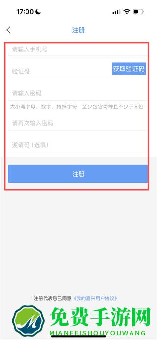 3、在注册页面,填写信息后,点击注册完成账号注册。