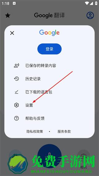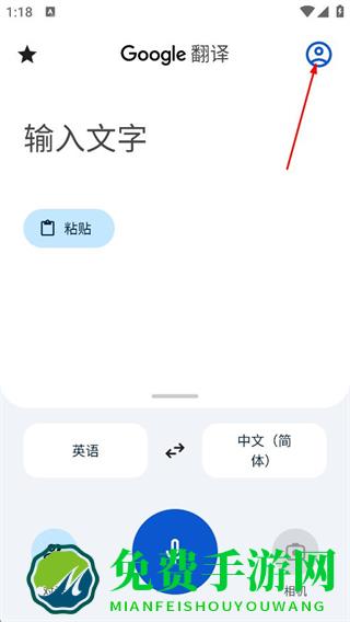 1、在翻译主界面,点击右上角的头像,打开功能菜单。