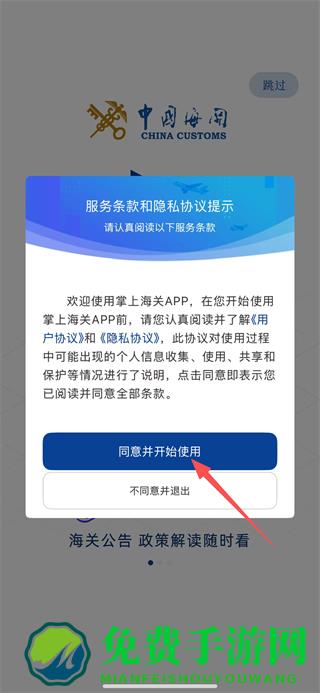 1、在服务条款和隐私协议提示弹窗中,点击同意,进入首页。