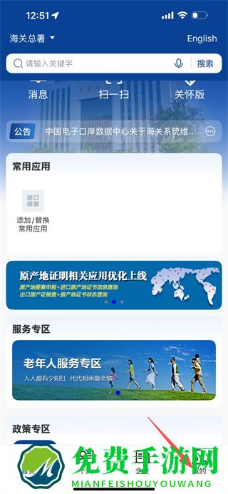 是海关互联网+政务服务体系的关键组成部分,承接官方政务服务延伸,功能设计贴合海关业务规范,确保服务的专业性与统一性。