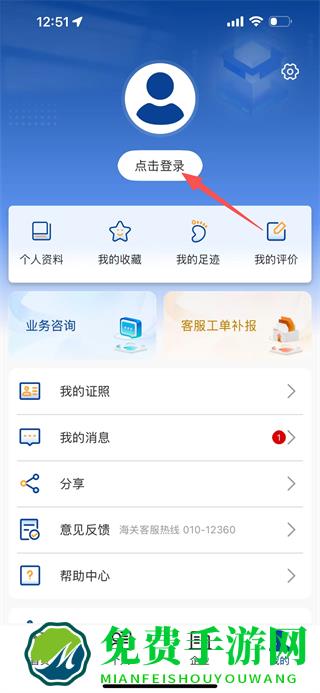 2、在掌上海关首页,点击底部导航栏的我的,进入个人页面。