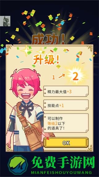 4、角色升级后,查看获得的属性加成,点击OK确认并继续游戏。