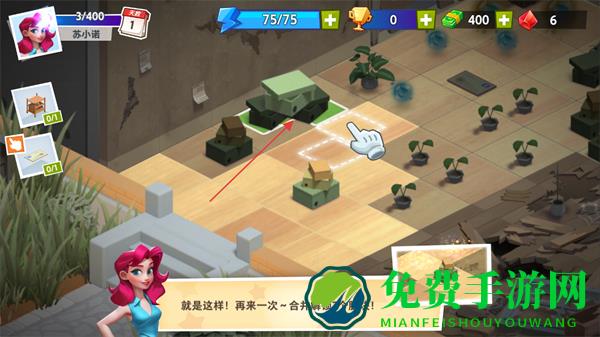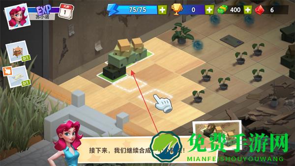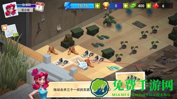 1、按照提示拖动三个相同物品,合并成新物品,完成基础合成操作。