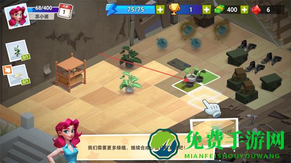 4、合并多个绿植,合成小盆栽获取收益,持续升级物品解锁更多内容。