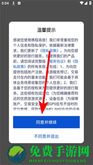 1、打开携程商旅APP,在弹窗中,点击同意并继续,进入登录页面。